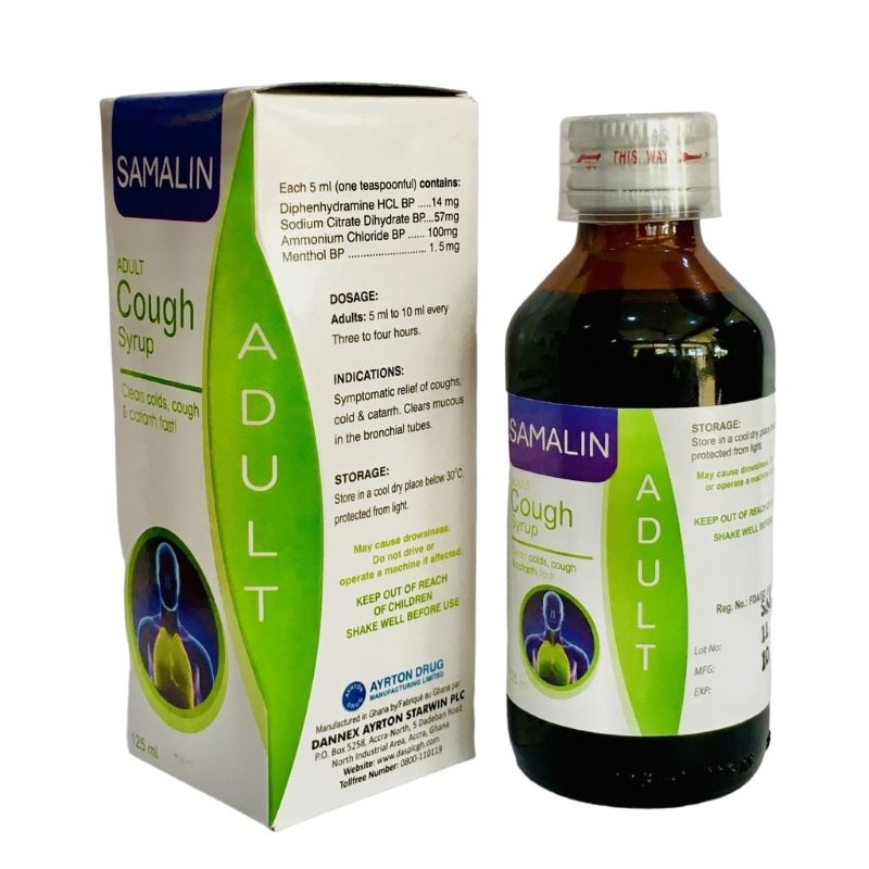 Samalin Adult Cough Syrup is for the symptomatic relief of coughs, colds and catarrh. It works by clearing mucous in the bronchial tubes.